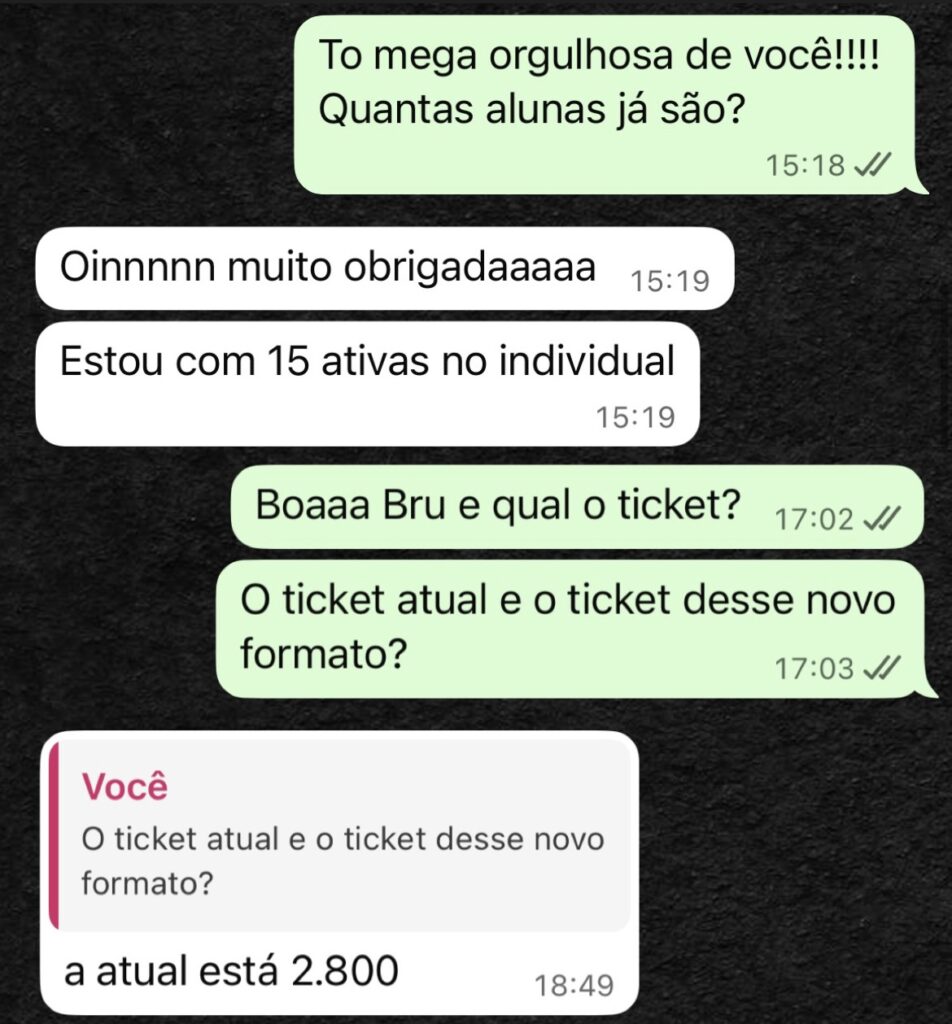 Durante o seu acompanhamento estarei 100% disponível para receber as suas dúvidas e te responder. Por e-mail e através do Whatsapp.